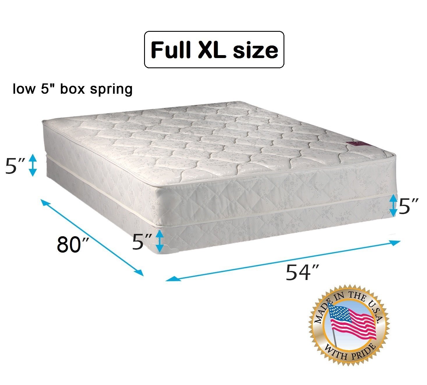 Legacy Full XL size (54"x80"x8") Mattress and Low Profile Box Spring Set - Fully Assembled, Good for your back, Superior Quality - One Sided - None Flip - By Dream Solutions USA