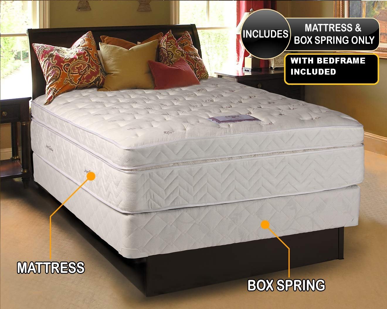 Dream Sleep Lexus Pocket Coil Pillowtop Plush Soft Firm Queen Size Mattress Set with Bed Frame Included - Spinal Support, High Density Foam, Orthopedic, Longlasting Comfort