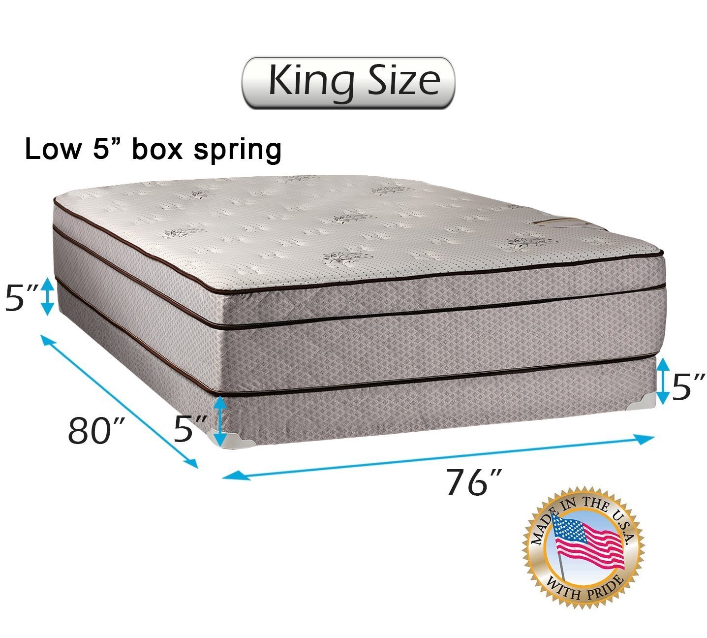 Get a better night's sleep with the Dream Solutions Fifth Ave Foam Extra Soft Foam Encased Eurotop Mattress and Low Profile Height Box Spring set.with Mattress Cover Protector This soft spring pillowtop mattress offers luxury and comfort for a deep, restorative sleep, and you'll feel better-rested and more rejuvenated the next day. Coil springs provide undistributed rest even as you toss and turn, meaning better motion separation, so partners with different sleeping styles can rest in comfort and tranquility. You'll also enjoy greater support for your back, spine and legs while relaxing or reclining. This pillow top mattress is designed to adjust to your individual weight and body shape for a customized fit. Kick back on the Dream Solutions Fifth Ave Pillowtop Mattress and Low 5" Height Box Spring set with Mattress Cover Protector and you'll have sweet dreams.