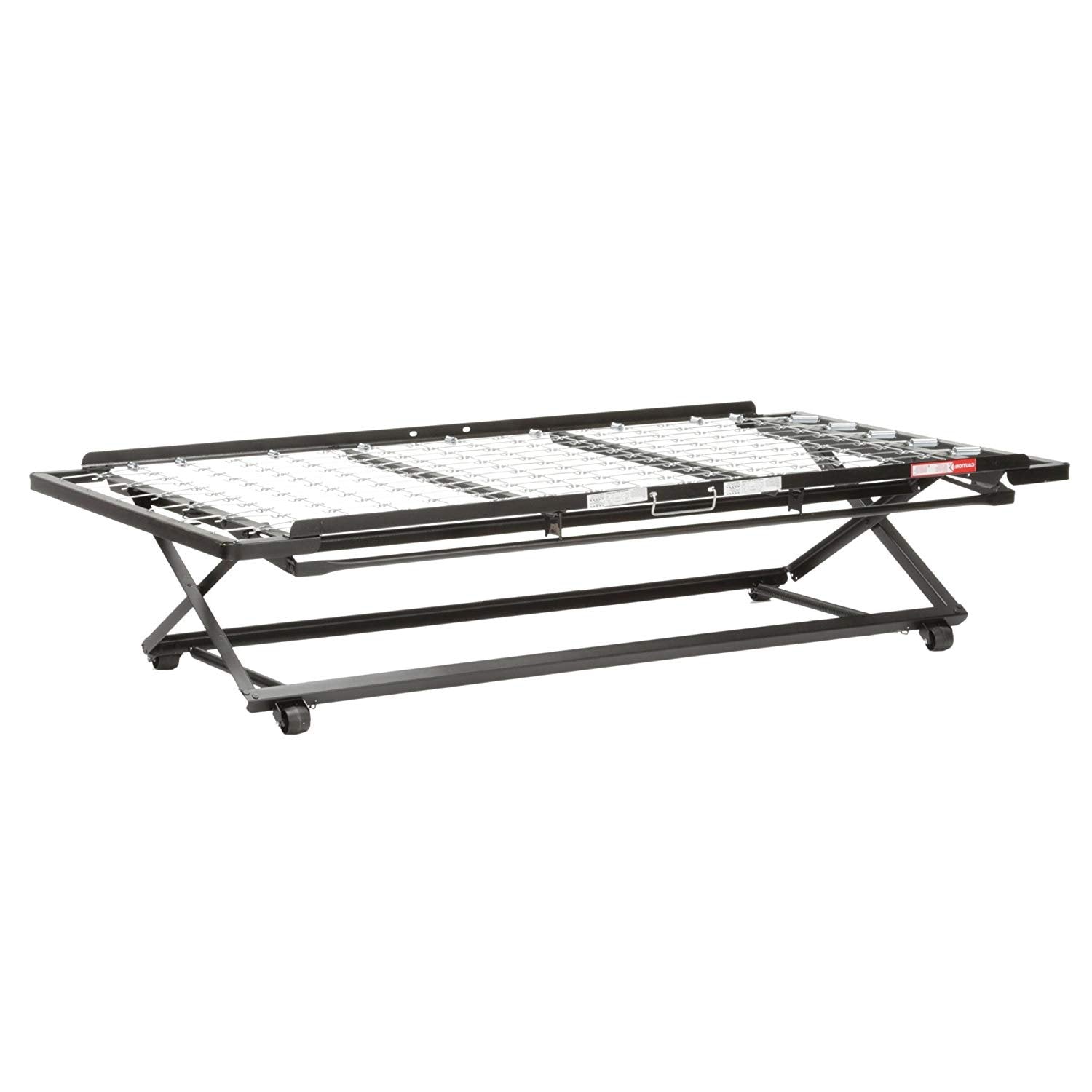 The link spring Pop-Up Trundle is spring-loaded to safely "pop" open when needed. This locking spring automatically lifts the unit into the "up" position and locks into place. Gravity locks ensures stability when the trundle is in the "up" position and allows for safe, controlled closing for storage. 2" plastic wheels provides mobility. (2) 1" cross arms provides maximum support. This unit measures 72" (L) x 38.5" (W) and can adjust from 4.5" to 15.25" in height. Fashion Bed Group features an assortment of bed rails suited to the types of beds in the marketplace. With a wide array of dependable options and being a trusted manufacturing leader in the industry for durable, quality bedding, Fashion Bed Group offers peace of mind and a solution for any bedding support need. Our products exceed all industry standards and can help preserve your mattress warranty. The Pop-Up Trundle comes with a 1-Year Limited Warranty against manufacturing defects. The Fashion Bed Group, a division of globally diversified Leggett & Platt Inc., is an industry leader in the production of fashionable beds, adjustable bed bases, top of bed textiles, bedding support and bar stools. By keeping a close eye on the design community and other fashion and decorating sources, Fashion Bed Group stays on top of the trends and knows the right mix of finishes and innovative designs to continually provide quality crafted products at an exceptional value.